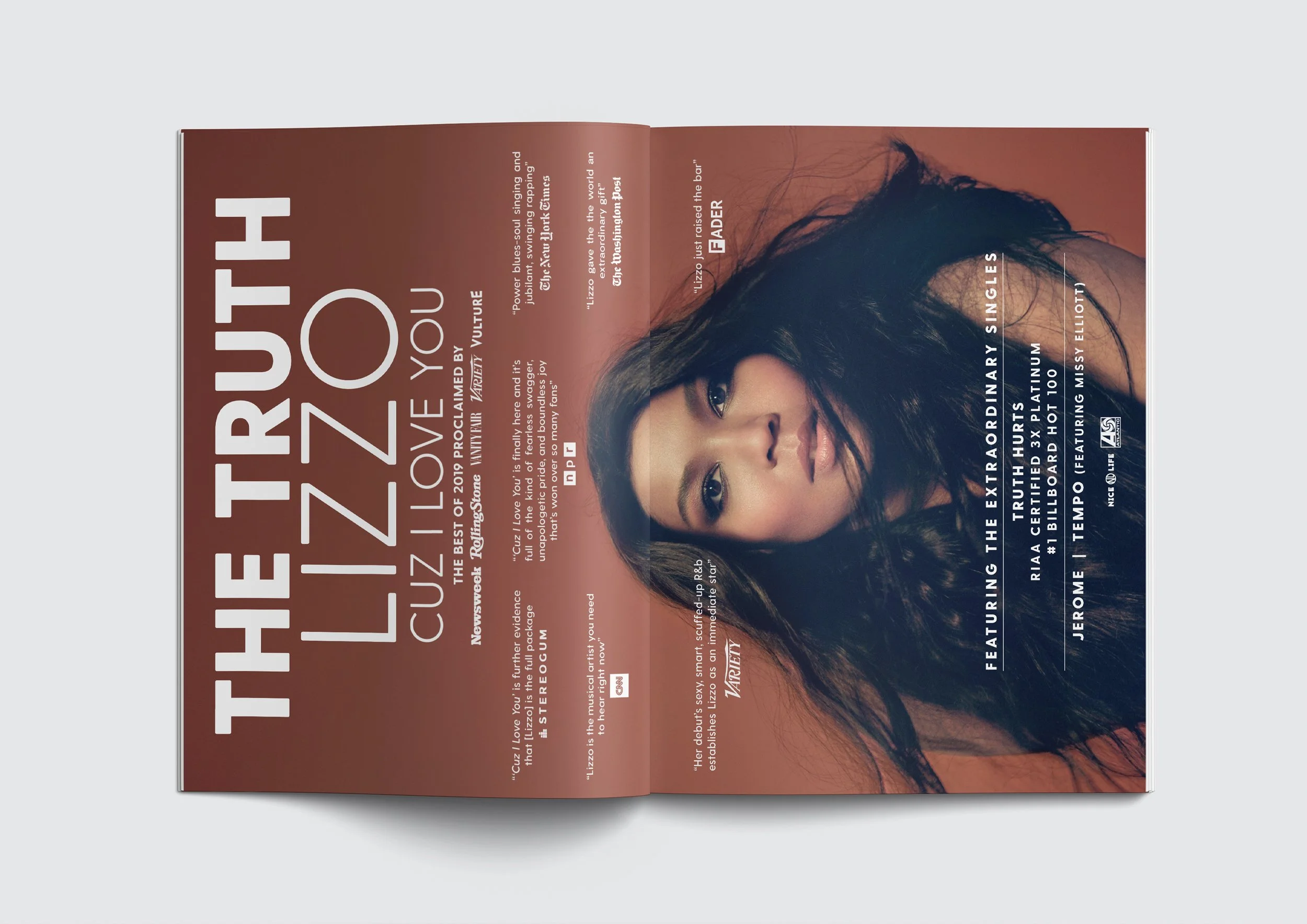 Grammy Awards For Your Consideration AdLizzoSingle Page Ad, 2 Page Spread •• Creative Direction, DesignBillboard Magazine, Rolling Stone