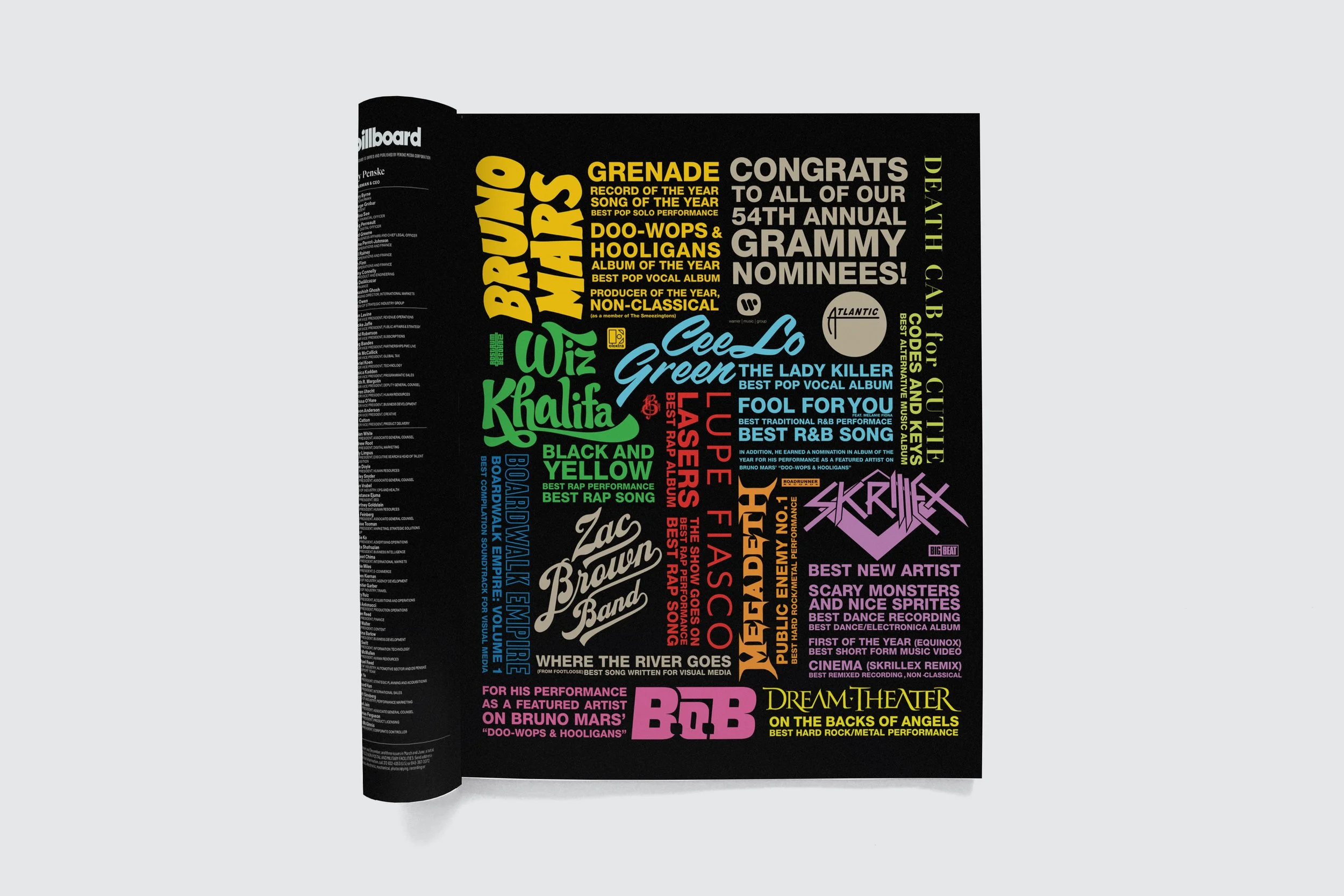 Grammy Awards Nomination AdMulti-Artist Single Page Ad •• Creative Direction, DesignBillboard Magazine, Rolling Stone